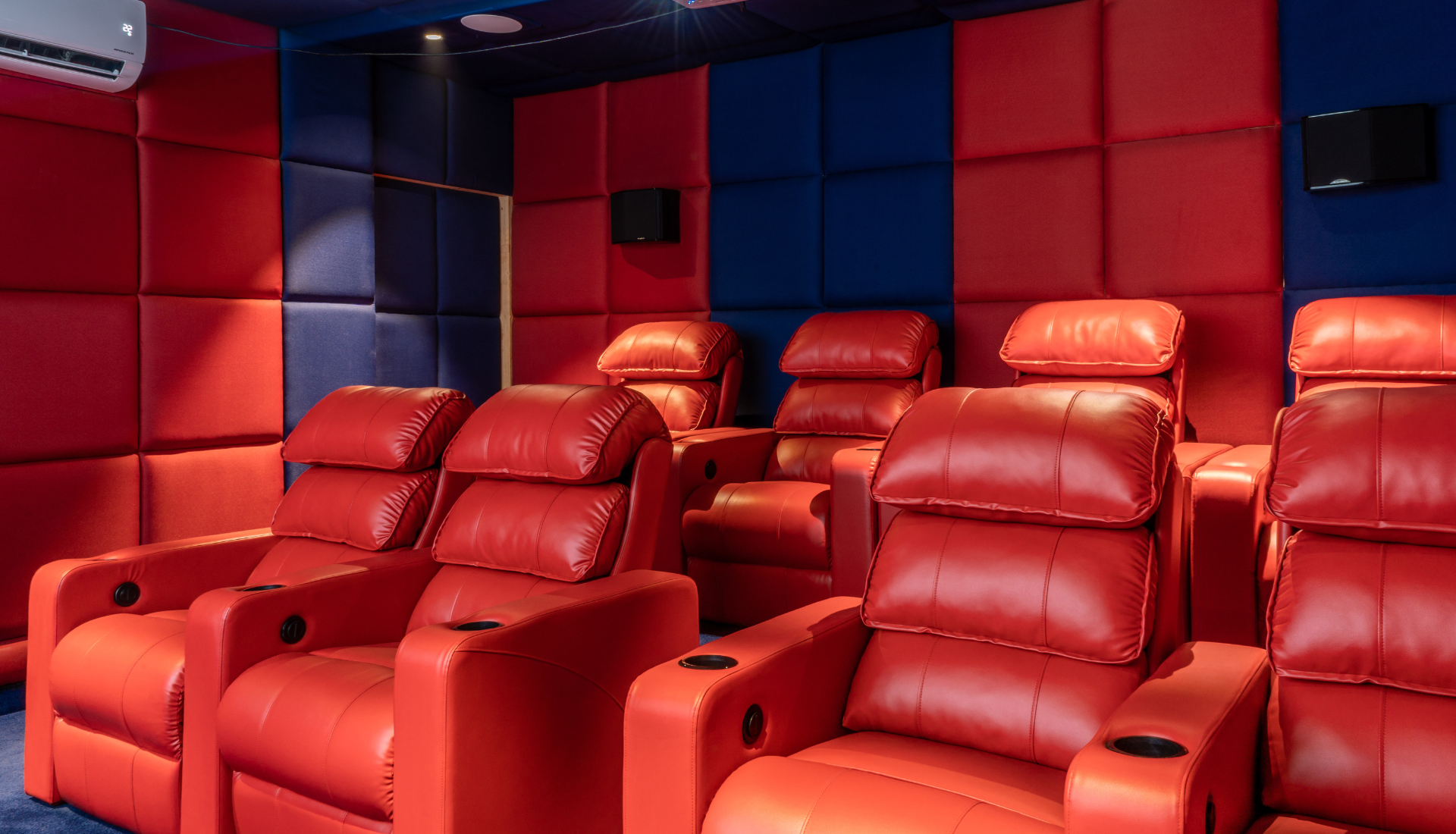 Dolby Atmos surround system with fully automated recliner seating for a fantastic personalized movie experience! Enjoy your favorite flicks, completely immersing yourself into the experience, the only breaks being the popcorn and a hot cup of your favorite coffee!